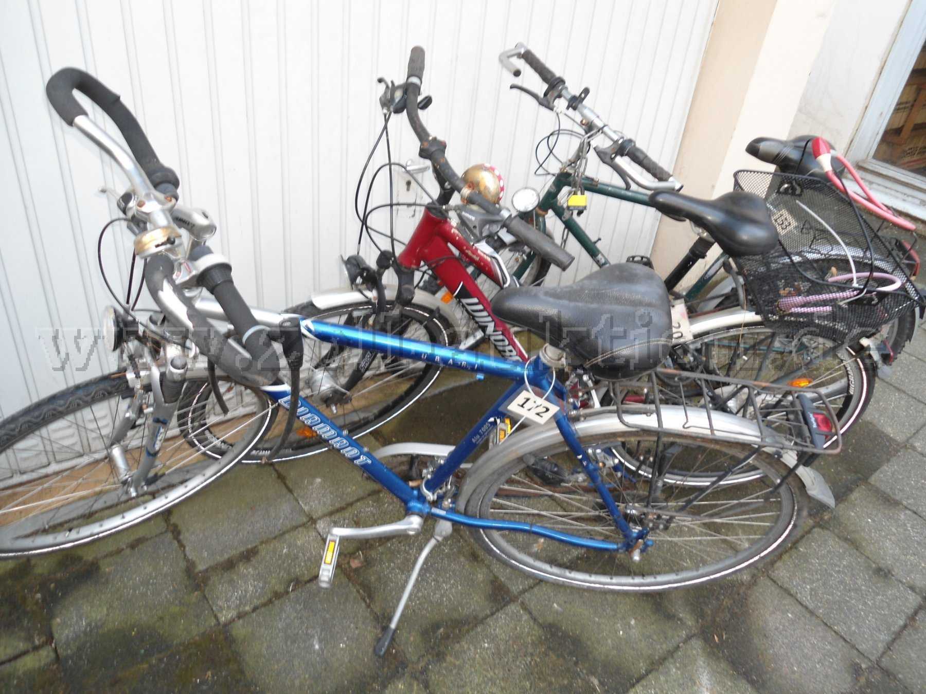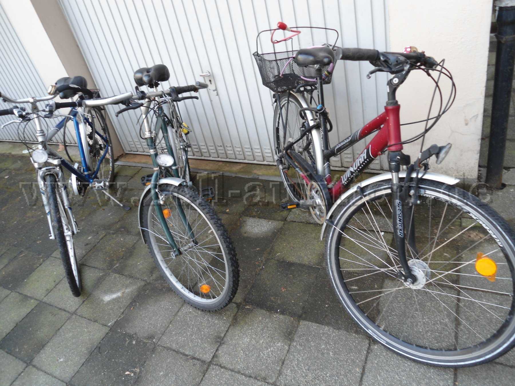 Die Fahrräder haben bereits eine längere Standzeit hinter sich. Die Reifen haben nur noch wenig Luft. Alle Räder weisen deutliche Gebrauchsspuren wie Verschmutzung, Kratzer und Rostansatz auf. Die Beschreibung der Fahrräder erfolgt nach Augenschein. Es kann keine Aussage zur Verkehrssicherheit nach der StvZO getroffen werden. Da es sich um Fundfahrräder handelt, konnte nur eine eingeschränkte Funktionsprüfung durchgeführt werden. Zwei der Fahrräder sind zunächst fahrtüchtig. Das Rad der Marke Winora kann nicht getestet werden, da es mit einem Schloss versehen ist. Auch an den Rädern der Marken Diamant und Ragazzi befindet sich ein Fahrradschloss. Die Räder sind aber beweglich. Die Schlösser wurden nicht entfernt. Versteckte Mängel können nicht ausgeschlossen werden. Bitte verschaffen Sie sich anhand der Fotos vor Gebotsabgabe einen Überblick. Gern können Sie nach vorheriger Terminvereinbarung die Räder hier im Fundbüro besichtigen.