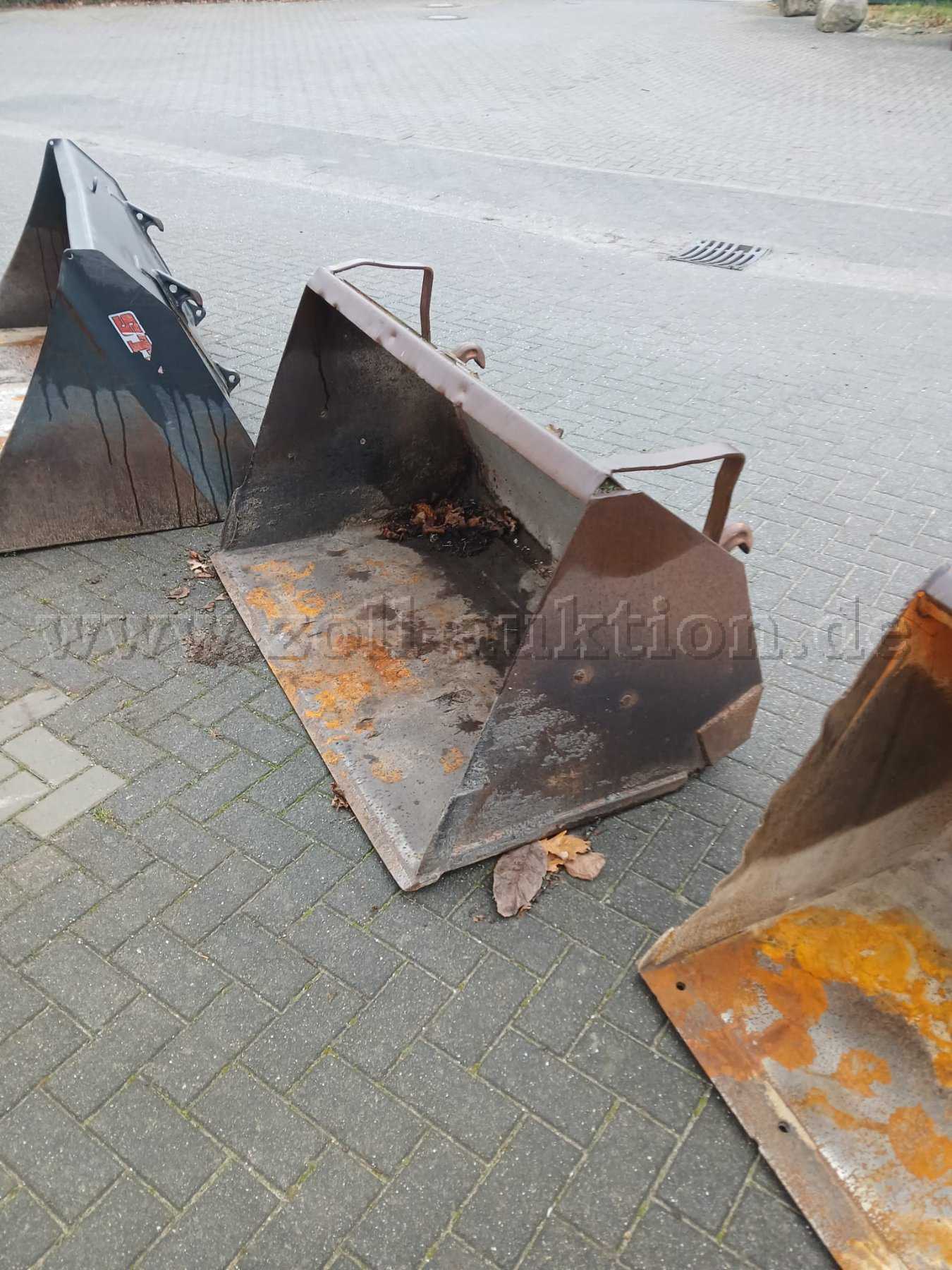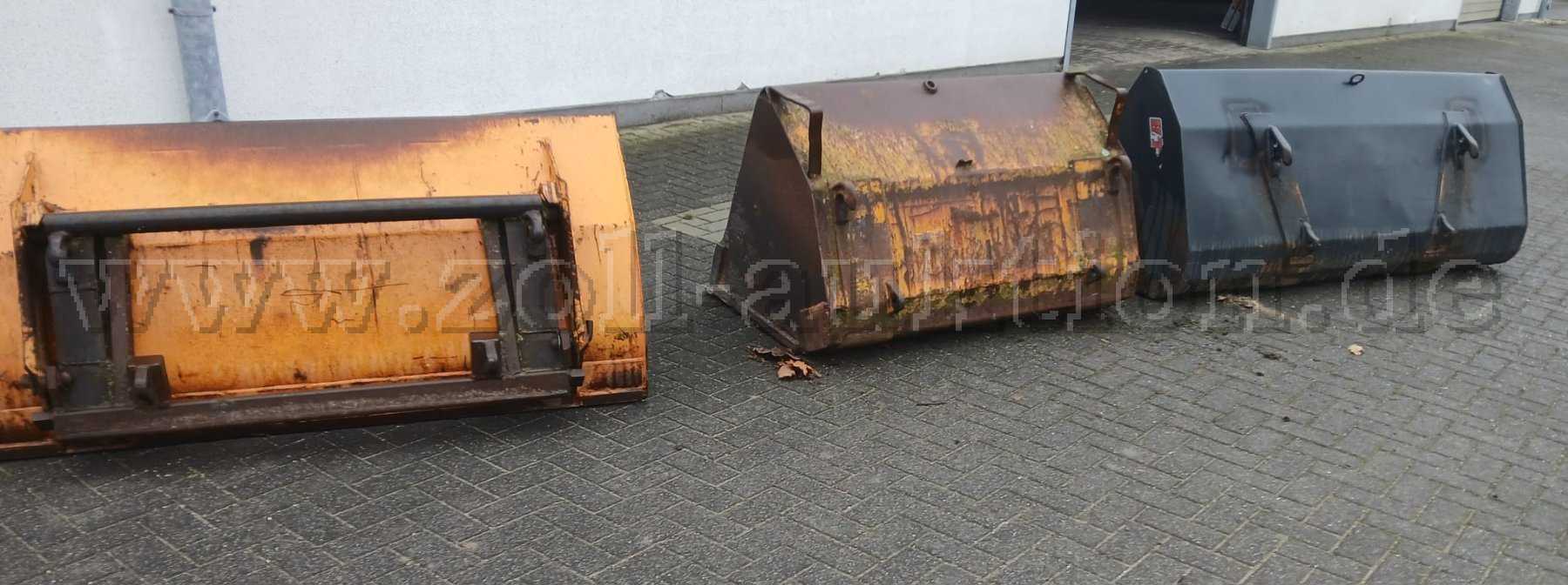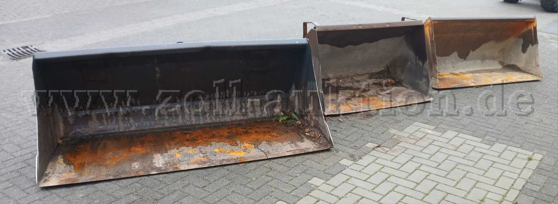 An der Leichtgutschaufel mit der breite von ca. 2,00m wurden bereits Bleche zur Verstärkung der Schaufel eingesetzt. Allgemein zeigen die Schaufeln starke Gebrauchsspuren auf und es wird ausdrücklich bei allen drei Schaufeln auf Korrosion hingewiesen. Die Schaufel mit der breite von ca. 1,57m ist mit einem Adapter zur Euroaufnahme versehen. Vermutlich wurde die Schaufel vorher durch ein anderes Fahrzeug mit einer anderen Aufnahme benutzt.
