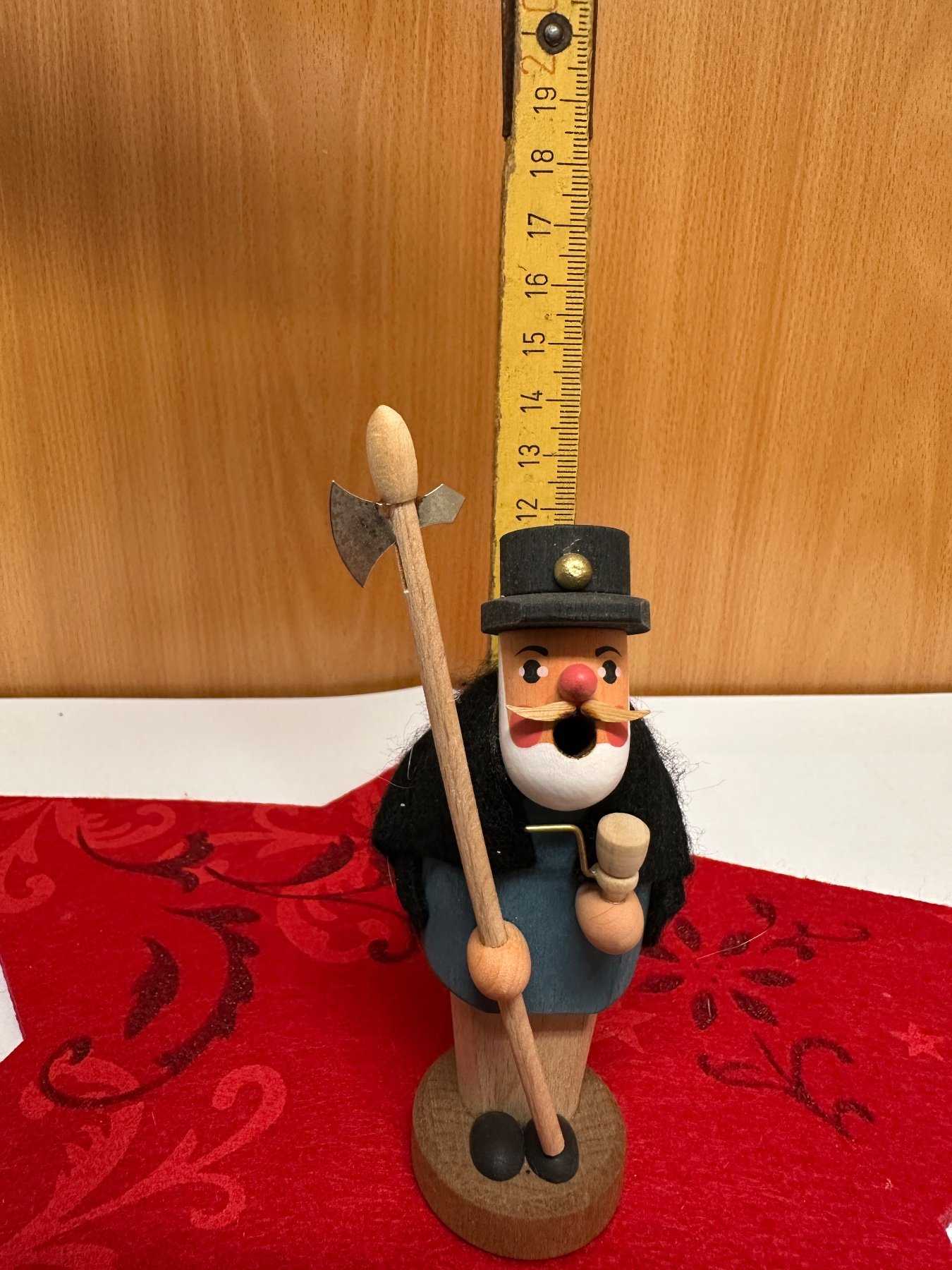 Angeboten werden hier drei Räuchermännchen aus dem Erzgebirge. Es handelt sich hierbei um gebrauchte und bereits benutzte Räuchermänner. Im Inneren sind Schmauchspuren vom Abbrennen der Räucherkerzen zu sehen. Ansonsten befinden sich die Räuchermänner in einem sehr guten Zustand mit wenigen kleineren Kratzern.