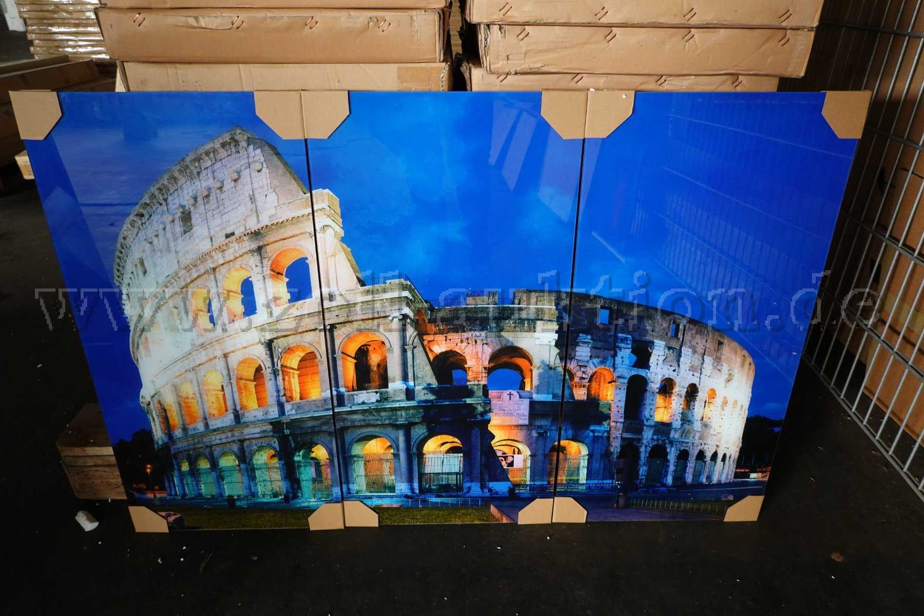Es handelt sich hierbei um ein Glasbild mit Schutzglas und Kantenschutz und zeigt das Motiv "Kolosseum".