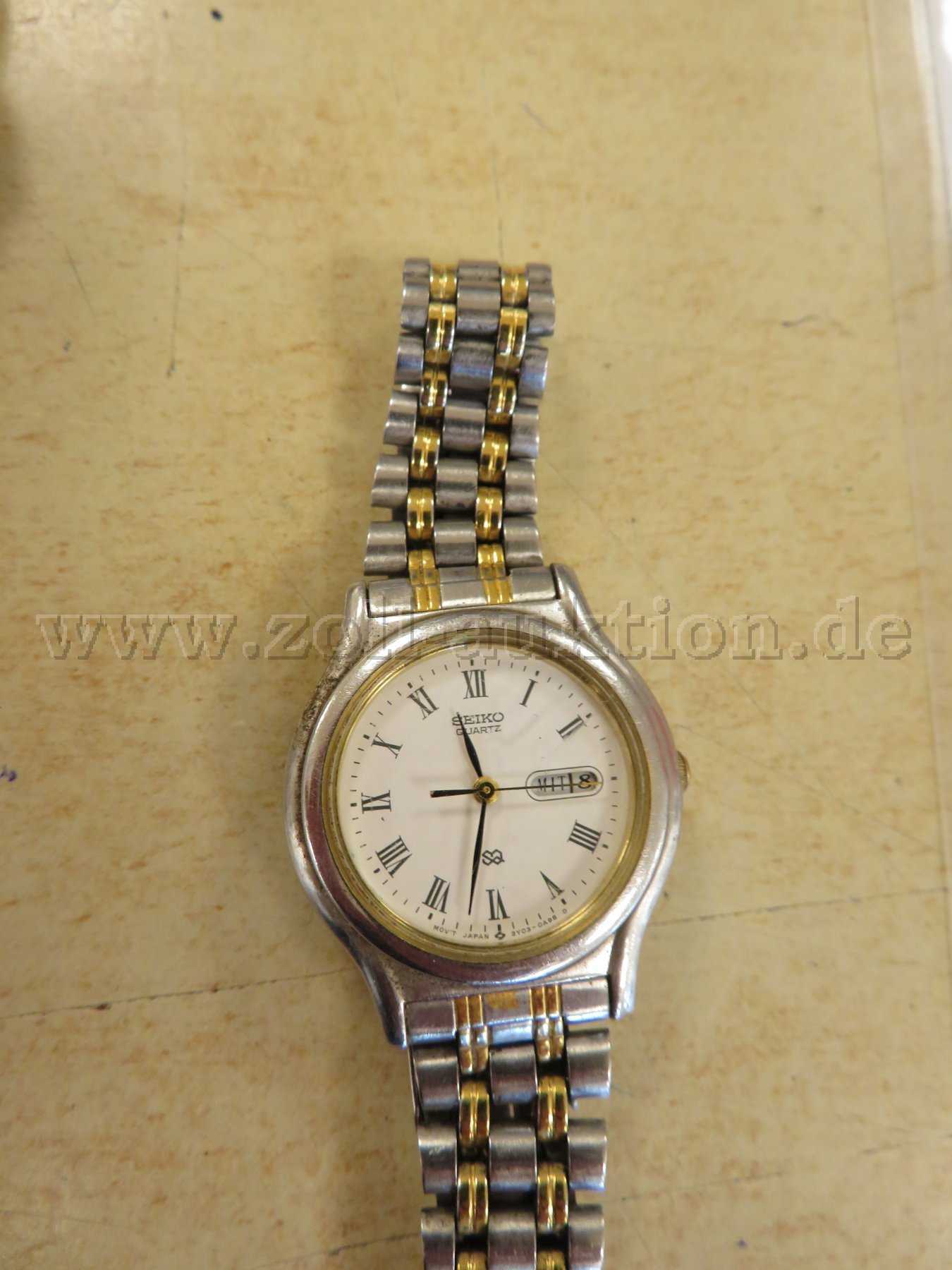 - Seiko, goldfarben, Armband schwarz, Farbabrieb an der Uhr, Armband rissig