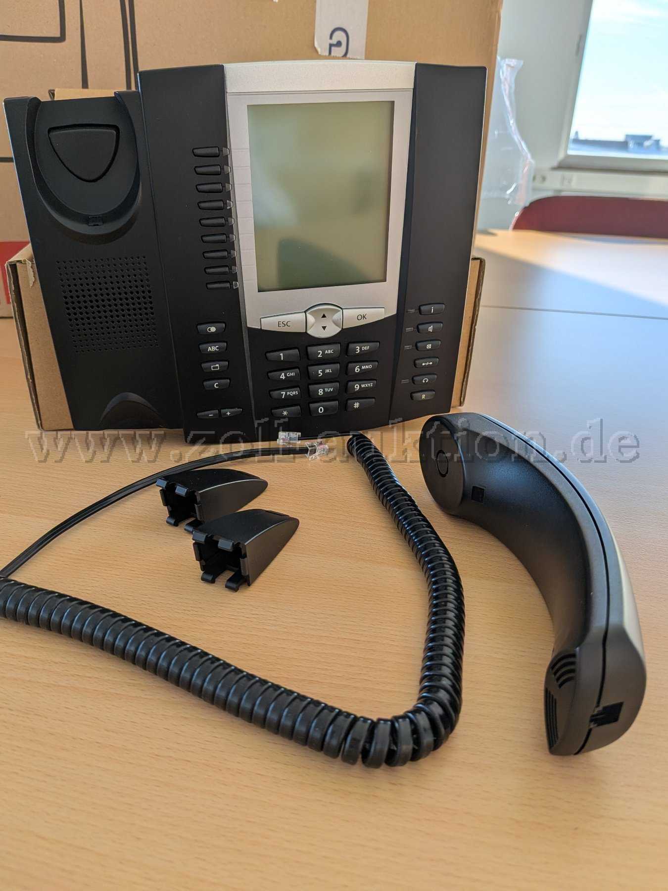 - Fest belegte Tasten für: Freisprech/Headset-Betrieb mit LED, Lautstärke, Anrufliste, Wahlwiederholung, Stumm schalten (Mute) mit LED, Halten, Auflegen, Optionen