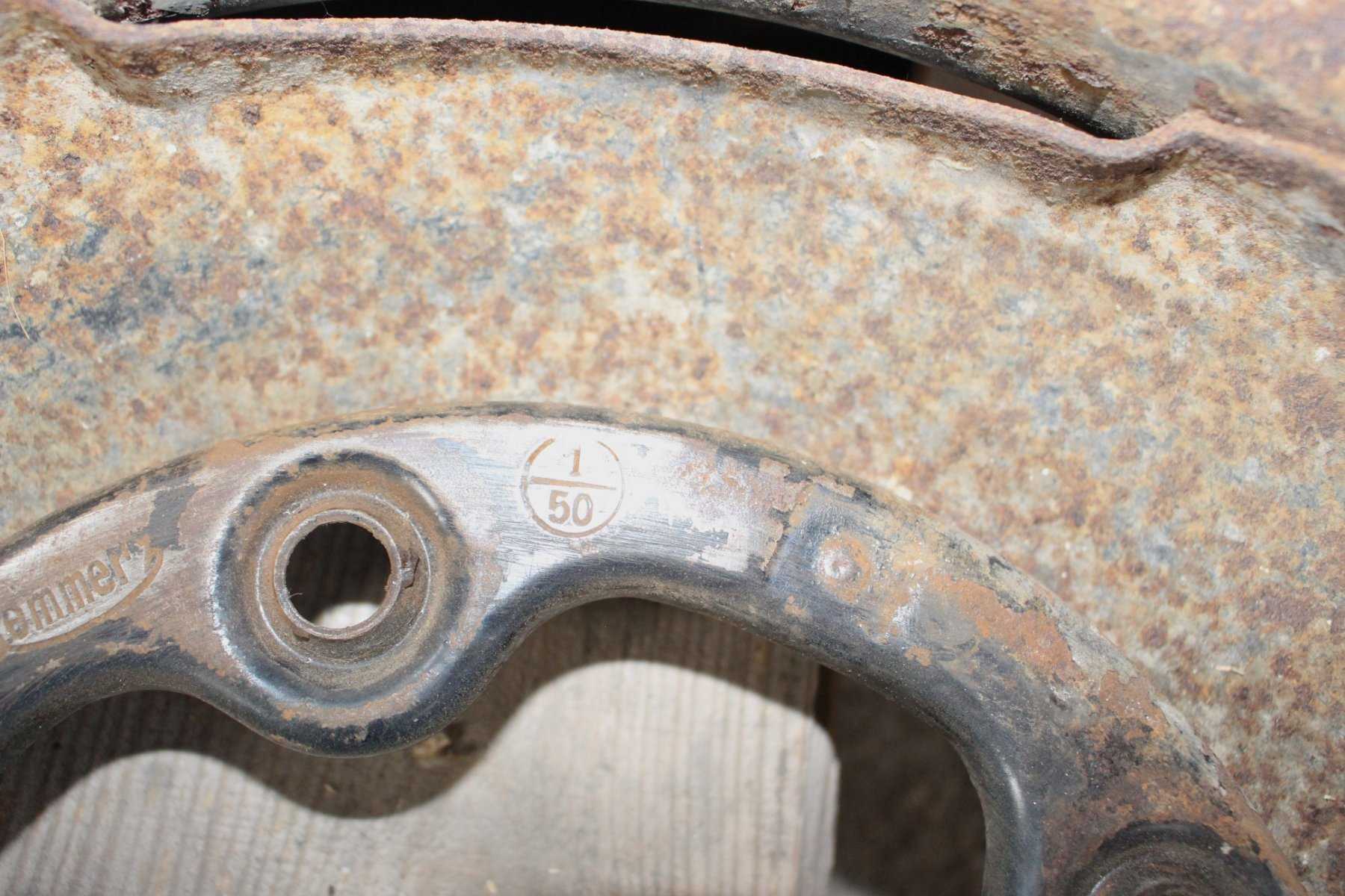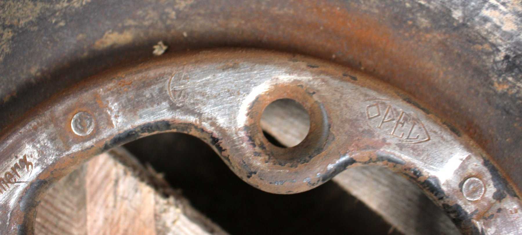 - bei den Felgen 1 und 2 konnten nach Entfernen der Rostschicht mit Schmiergelpapier an den Innenseite die angeführten Angaben festgestellt werden