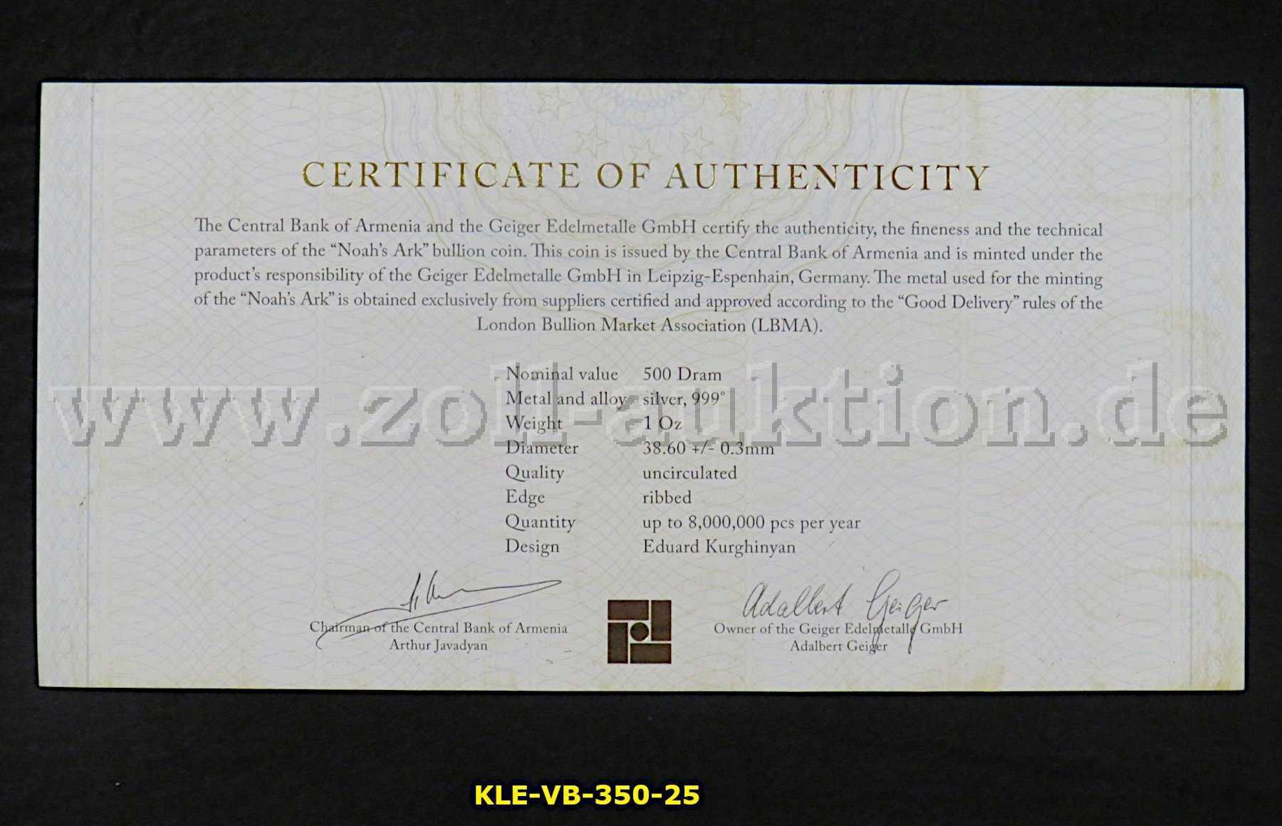 500 Silbermünzen der Serie Arche Noah von 2020