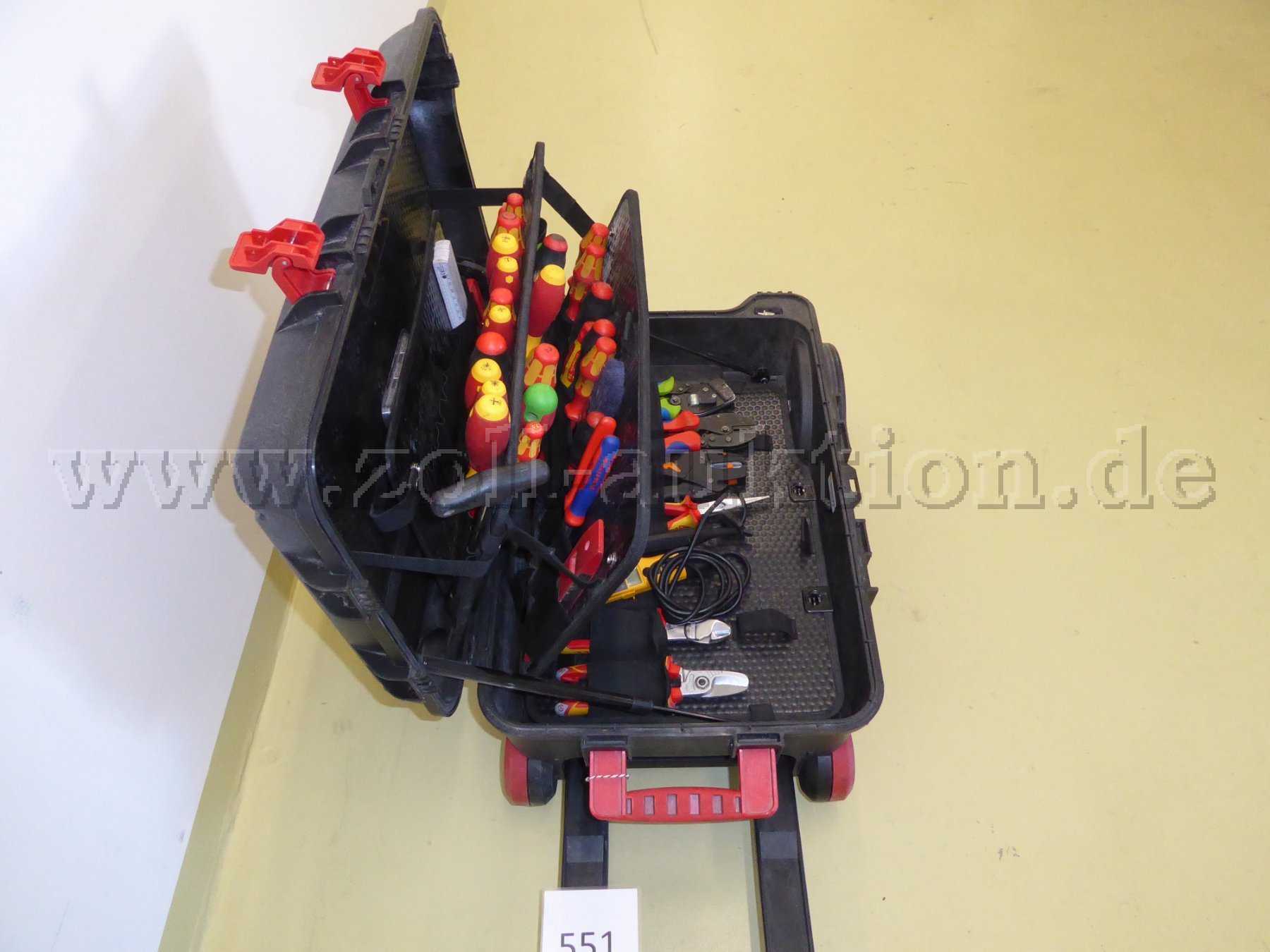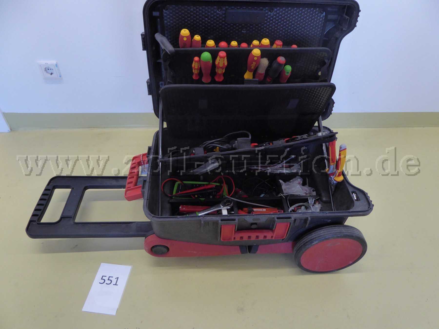 - Es handelt sich hierbei um einen fahrbaren Werkzeugkoffer mit Werkzeugen für Elektro arbeiten, mit Gebrauchsspuren / Kratzer und Dreck