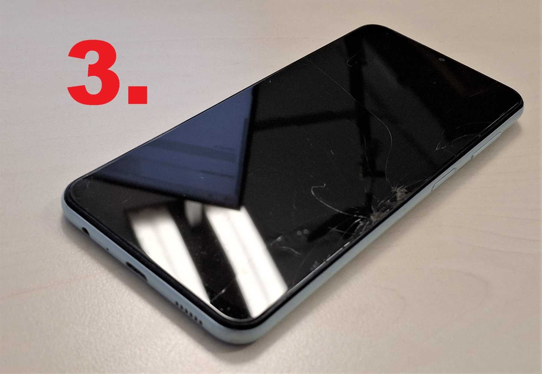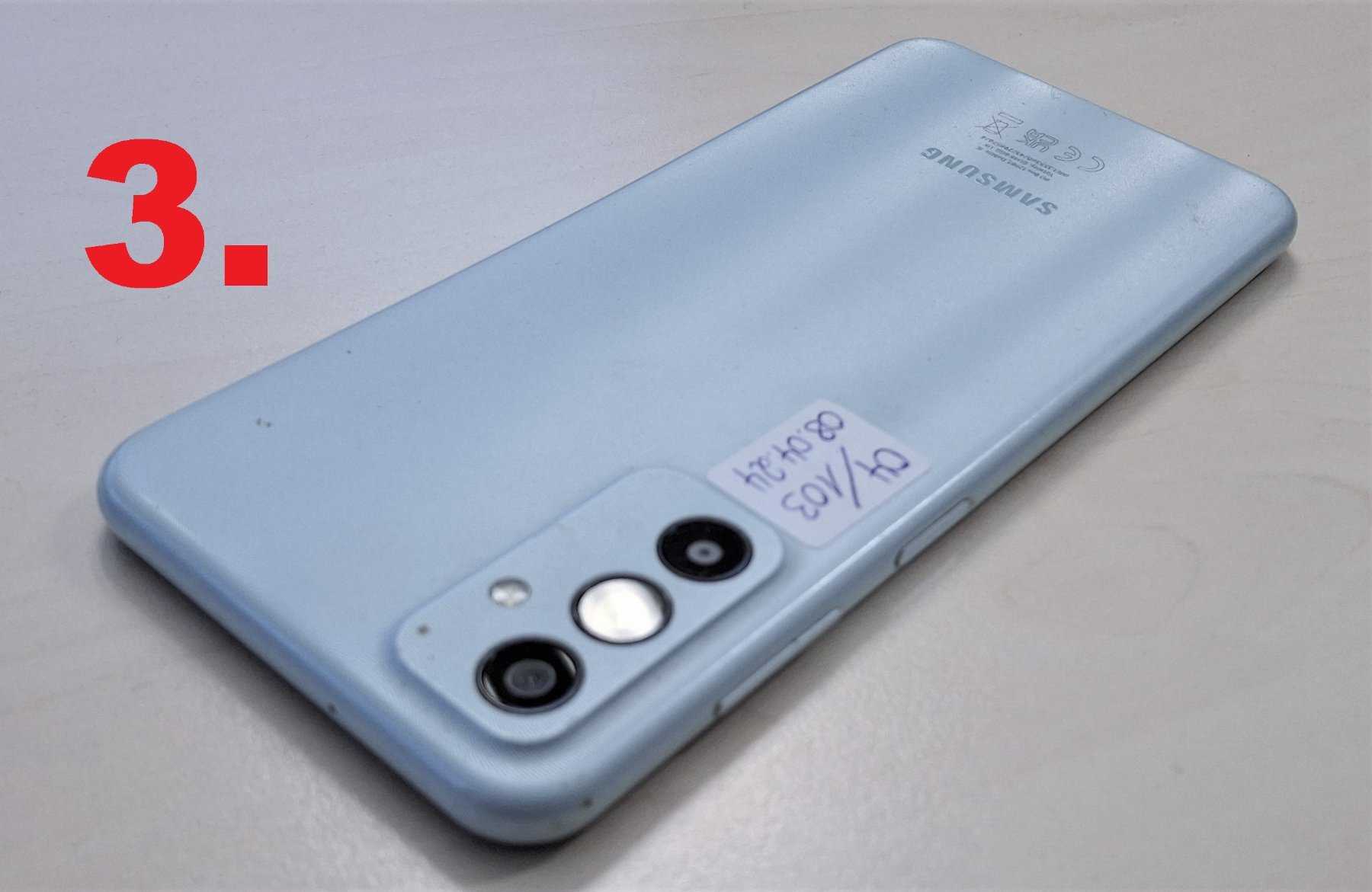 3. Samsung, Galaxy M13, SM-M135F, 64GB, blau, feine Kratzer und ein Displayschaden sind vorhanden.