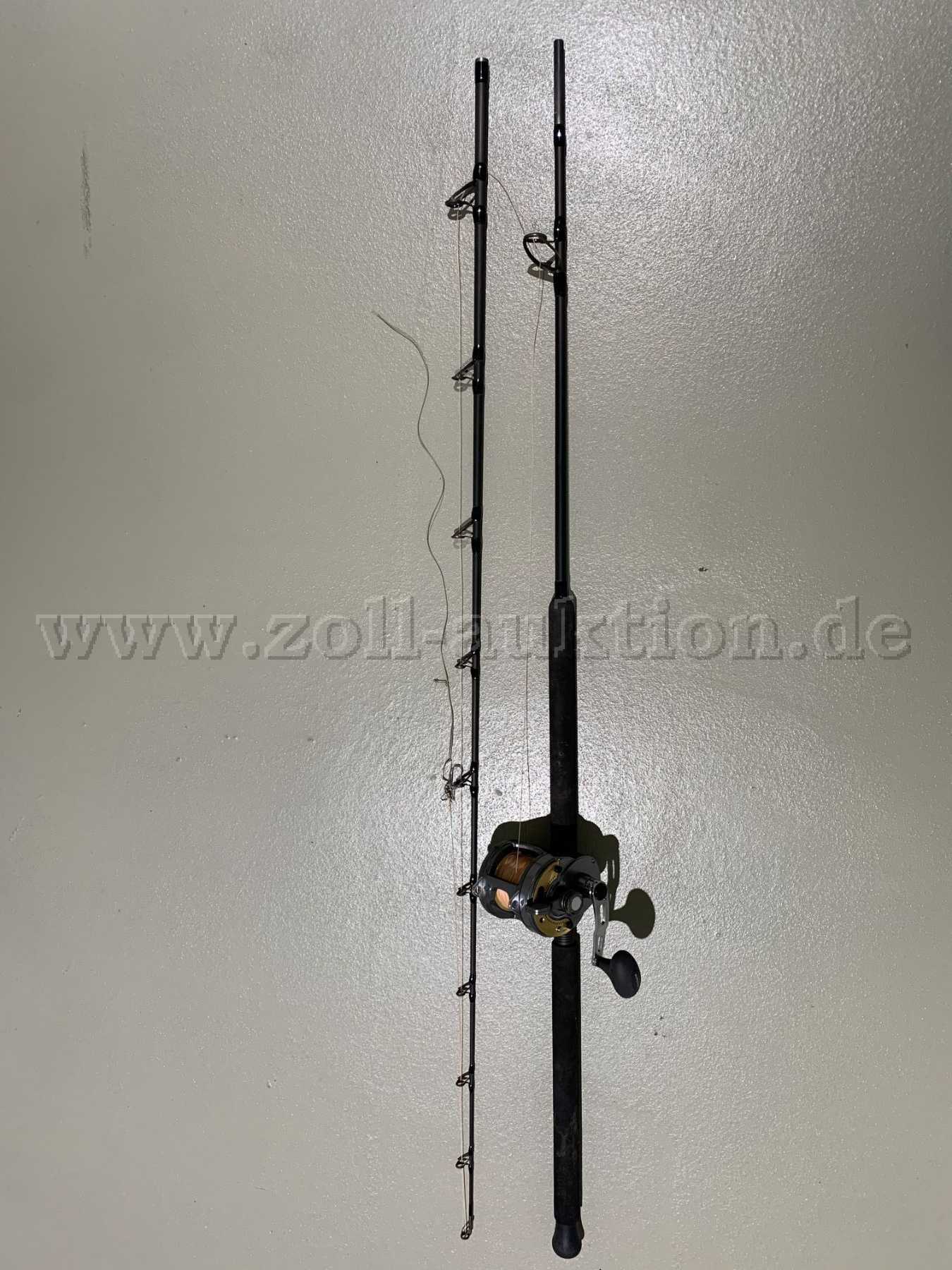 Zur Ersteigerung steht ein umfangreiches Angelsortiment bestehend aus insgesamt fünf Angelruten, ein Kescher, eine Angeltasche, Waller-/Welshölze und verschiedenes Angelzubehör / Originalware!