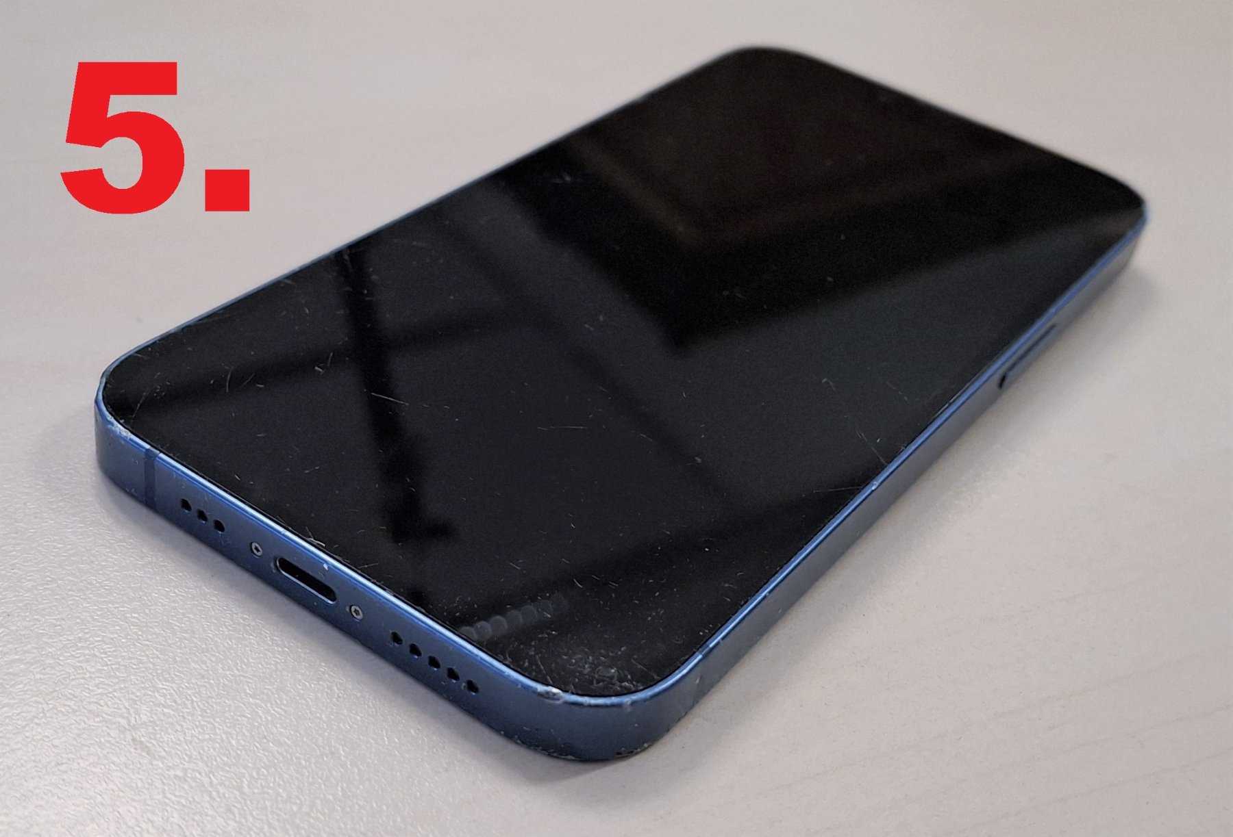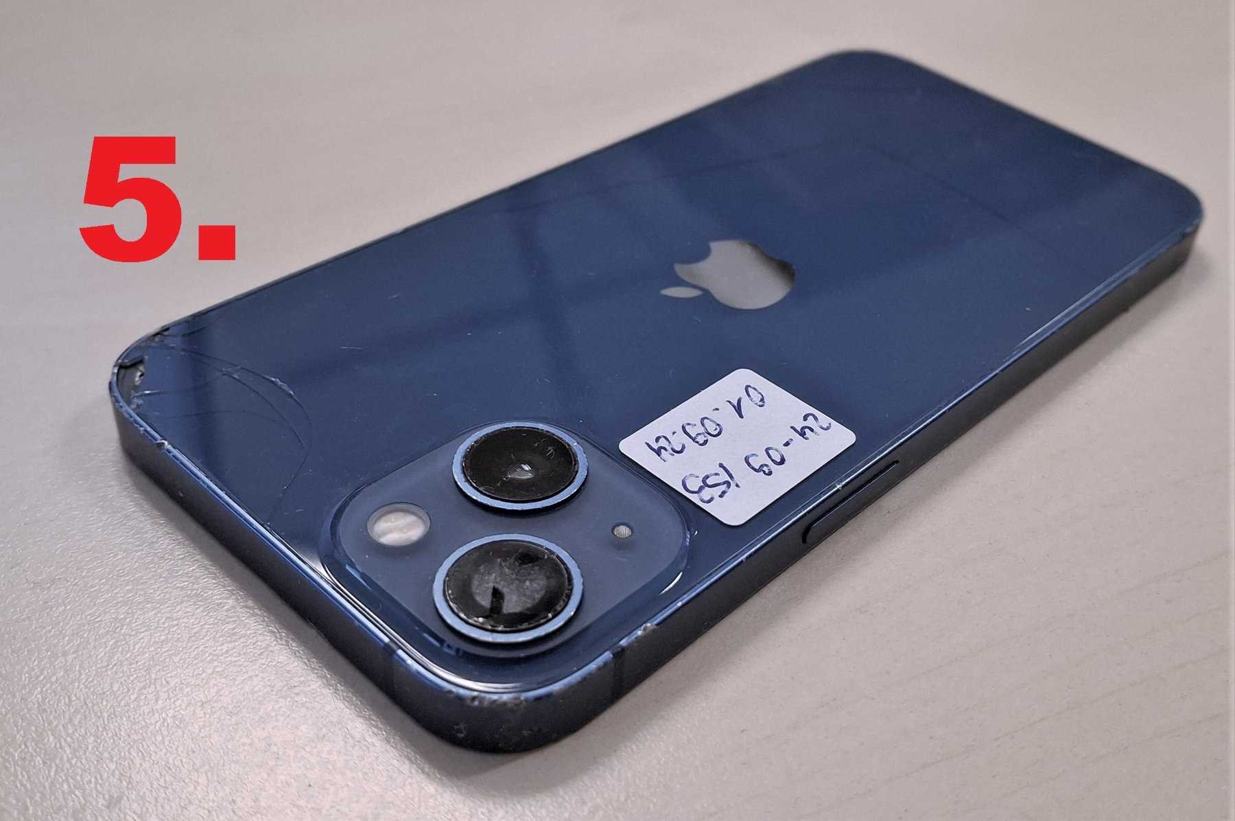 5. iPhone 13, A2633, 128GB, blau, Kratzer sind vorhanden, das Display und die Rückseite sind beschädigt. Bei diesem iPhone ist eine Aktivierungssperre gesetzt.