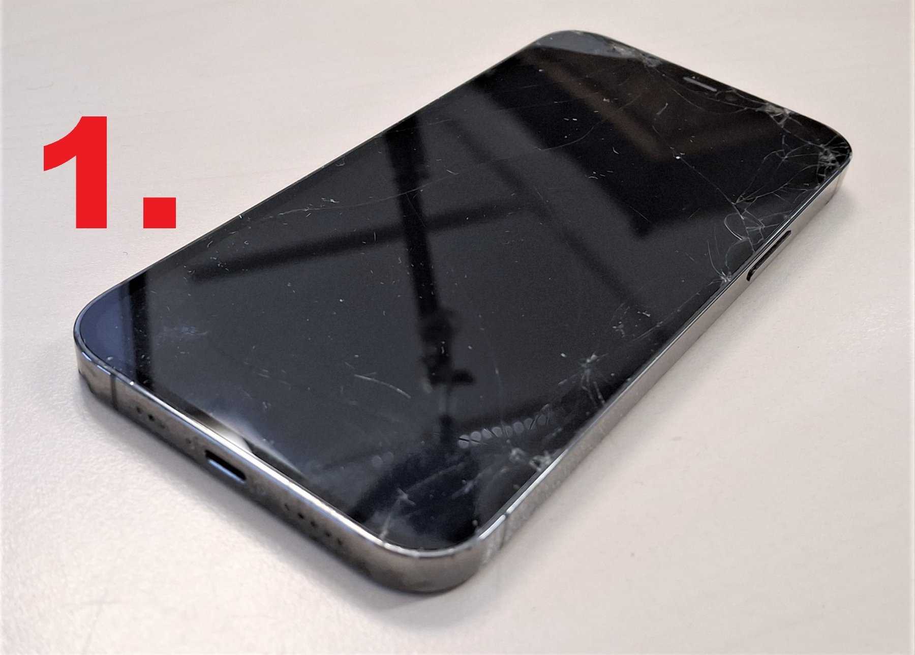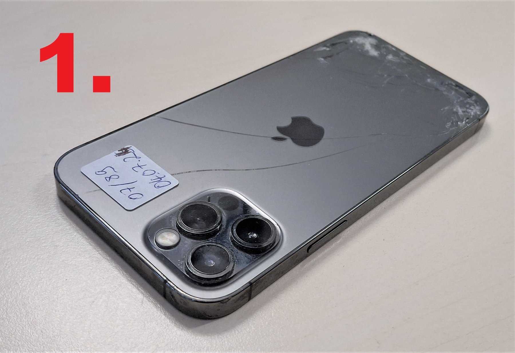 1. iPhone 12 Pro, A2407, 128GB, grau, Gerät ist beidseitig beschädigt. Bei diesem iPhone ist eine Aktivierungssperre gesetzt.