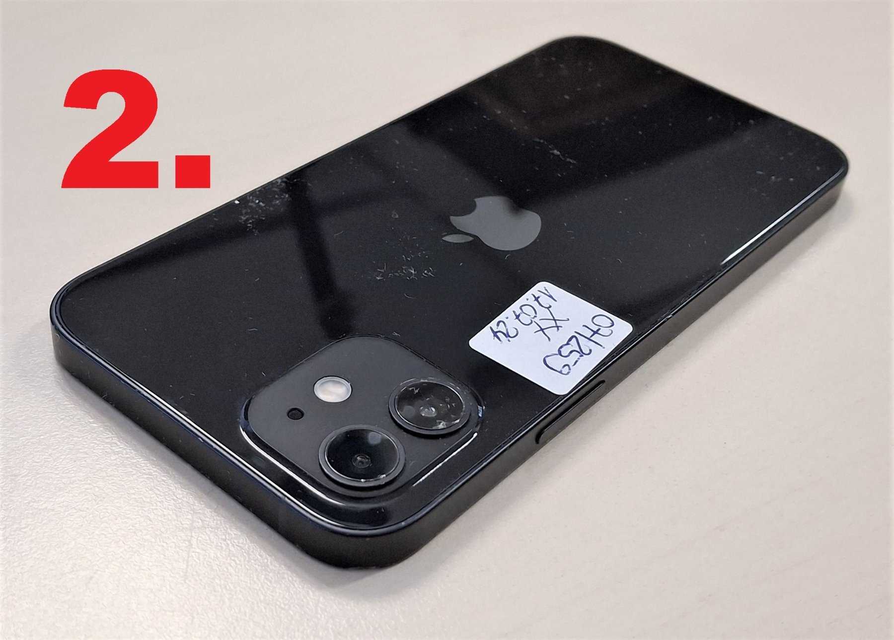 2. iPhone 12, A2403, 64GB, schwarz, Kratzer und ein Displayschaden sind vorhanden. Die Rückkamera (Glas) ist beschädigt. Das iPhone hat keine Aktivierungssperre.