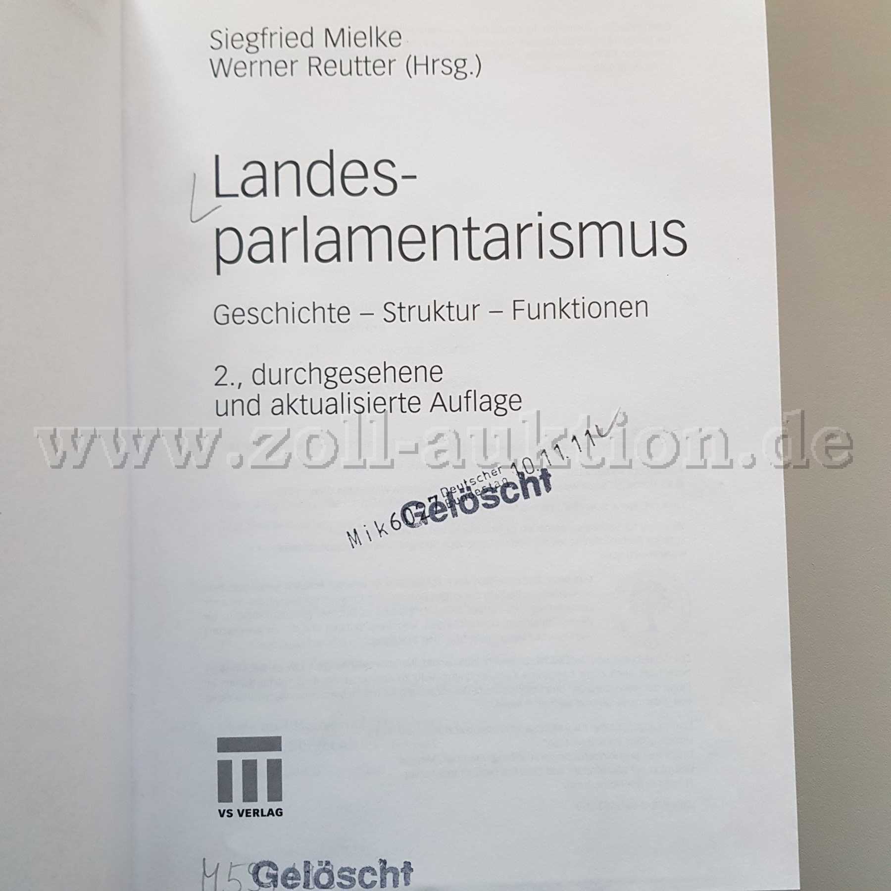 Landesparlamentarismus : Geschichte - Struktur - Funktionen / Siegfried Mielke, Werner Reutter (Hrsg.). - 2., Auflage. - Wiesbaden : VS Verlag, 2012. - 674 Seiten