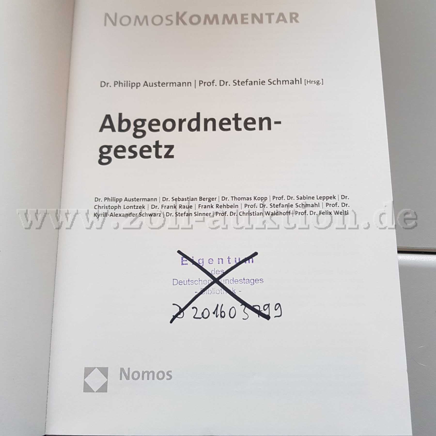 Abgeordnetengesetz / Dr. Philipp Austermann, Prof. Dr. Stefanie Schmahl (Hrsg.). - Baden-Baden : Nomos, 2016. - 815 Seiten