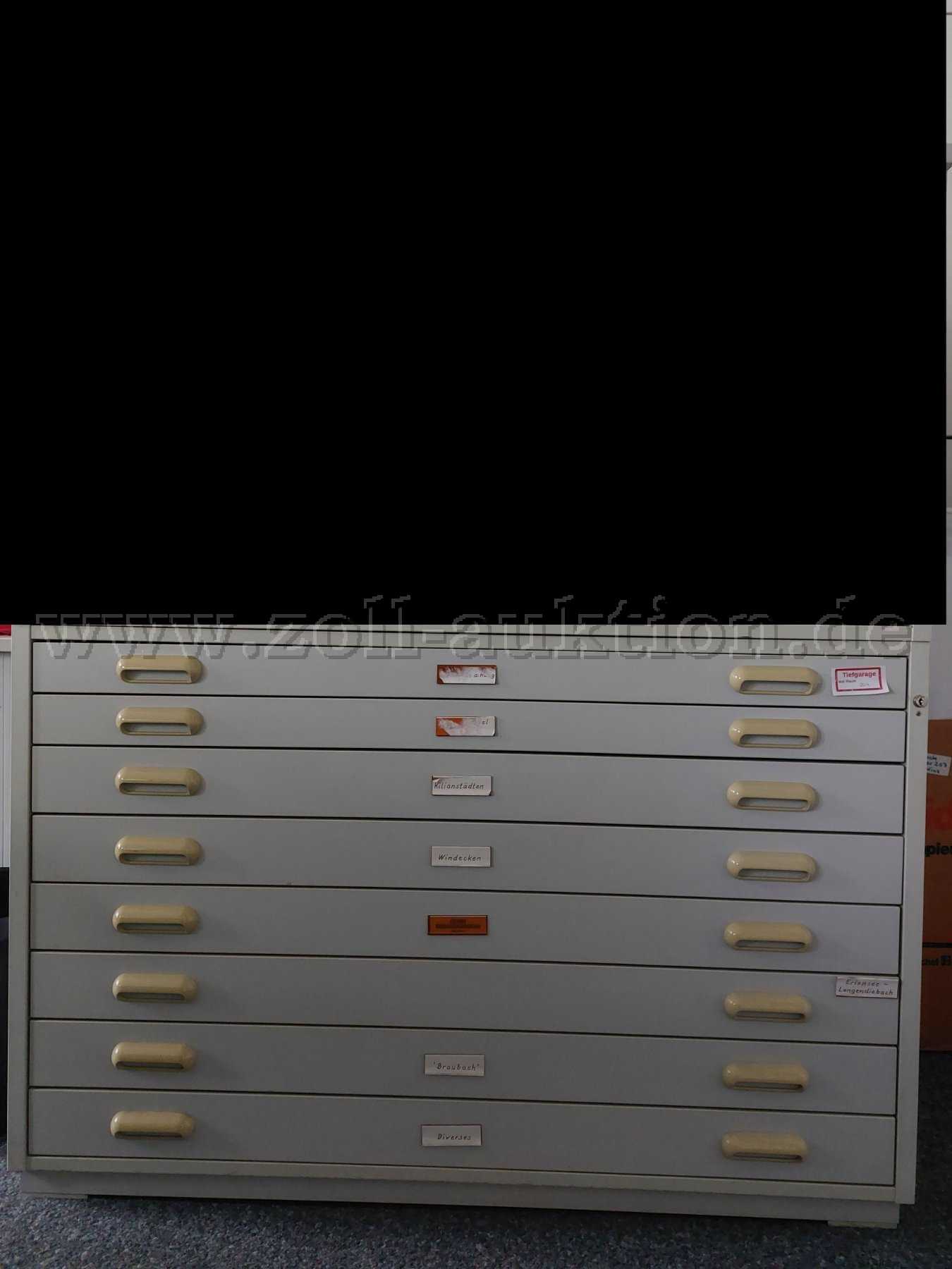 1 Kartenschrank mit 8 Fächern / grau / B:122 T: 85 H: 82 / Hersteller: n.n