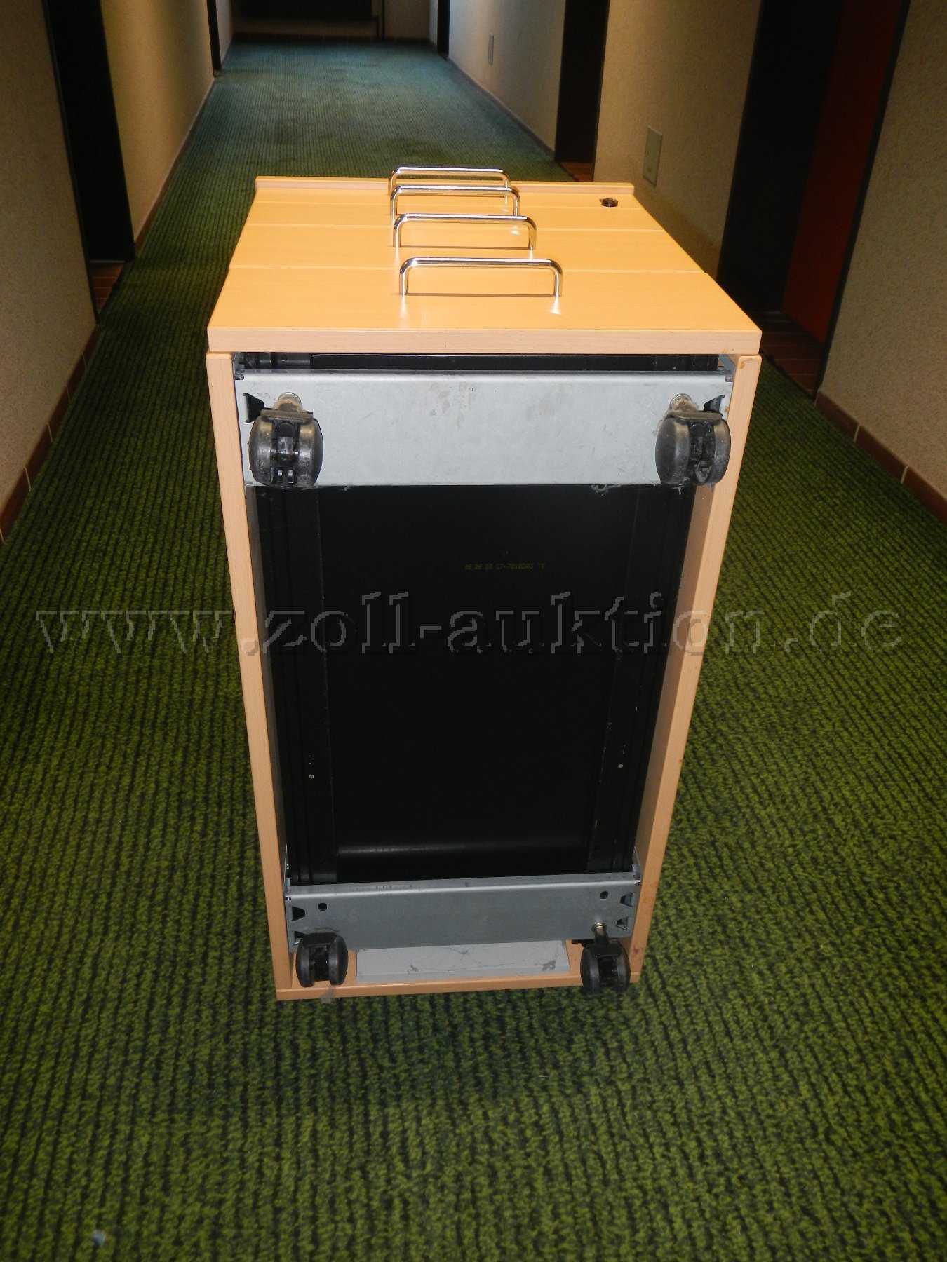 - Maße: Tiefe: 0,80m x Breite: 0,42m x Höhe mit Rollen: 0,58m, Höhe ohne Rollen: 0,50m