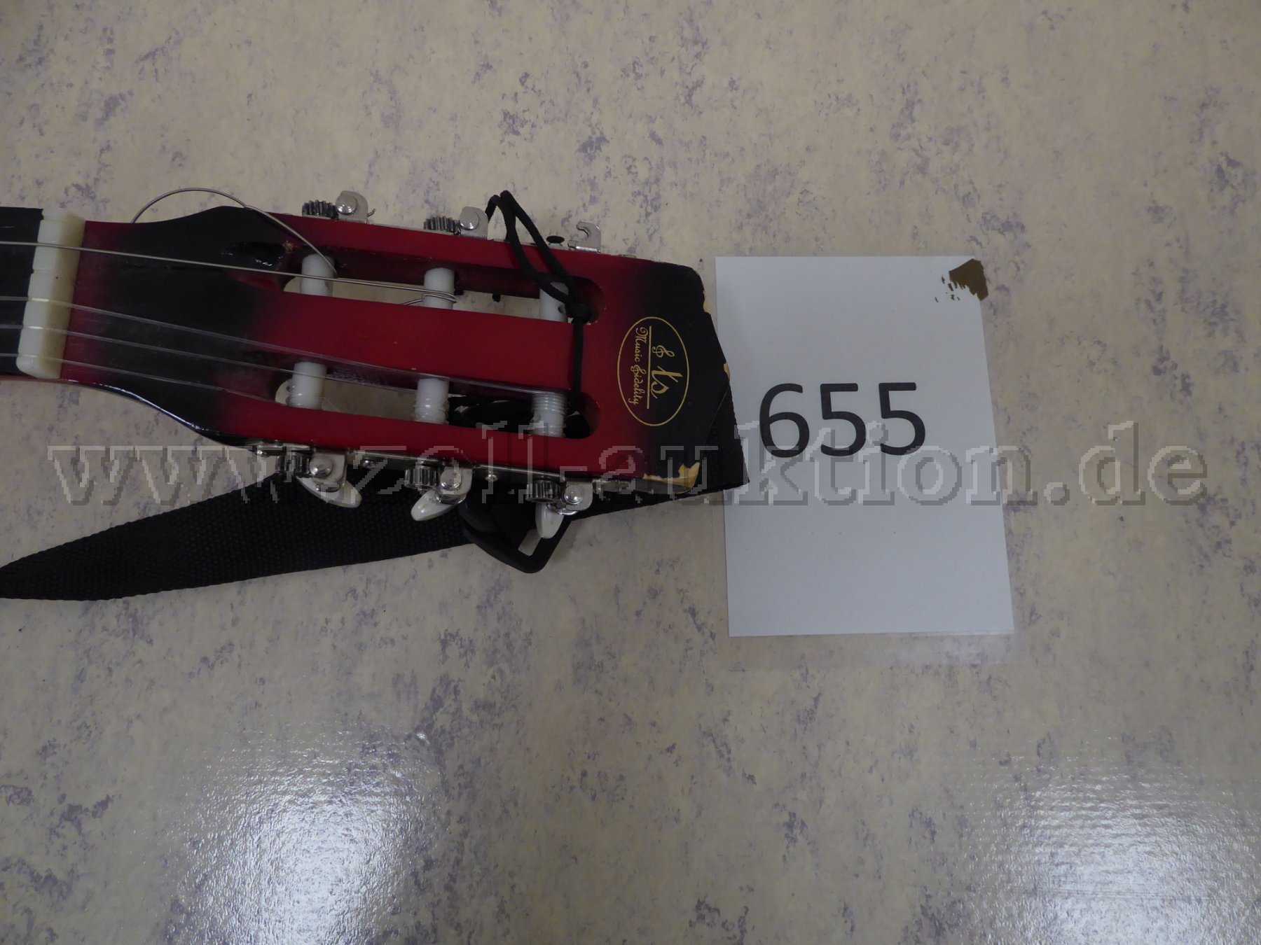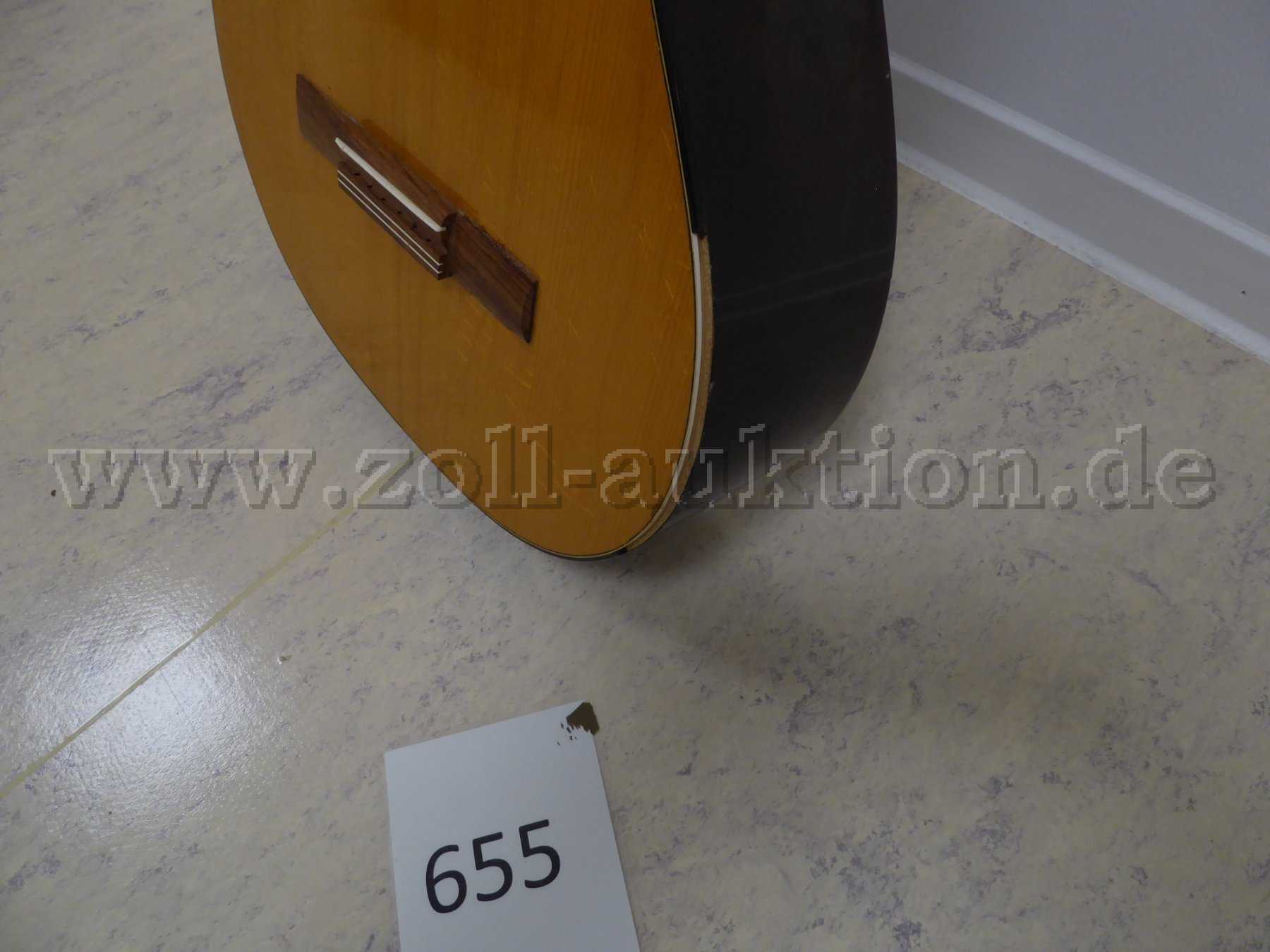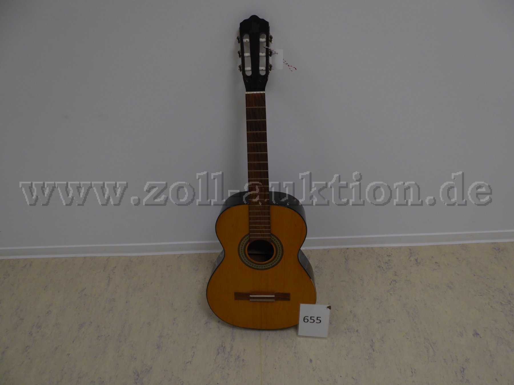 - 1 x akustische Gitarre in Braun von unbekanntem Hersteller ohne Saiten und ohne Tragetasche.