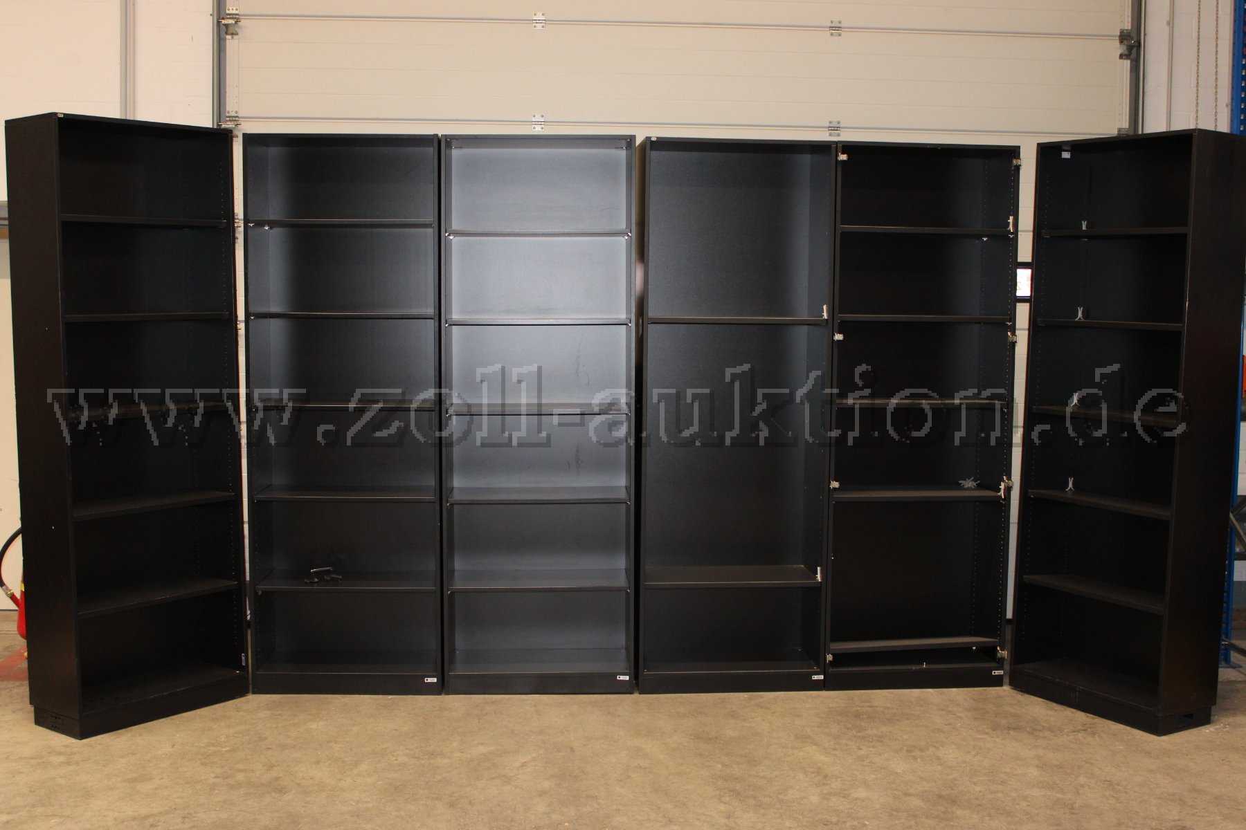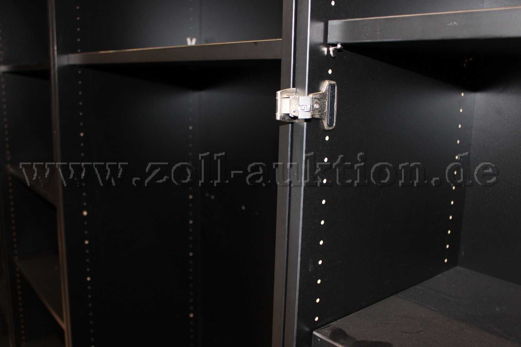 - Zustand: Es sind Kratzer und Klebebandreste auf der Oberfläche vorhanden. Beschädigung am Korpus oder Sockelbereich möglich. 1 Regal fehlen 3 Einlegeböden, teils können Bodenträger fehlen. 1 Regal Türscharniere befestigt (abschraubbar), Türen nicht vorhanden.