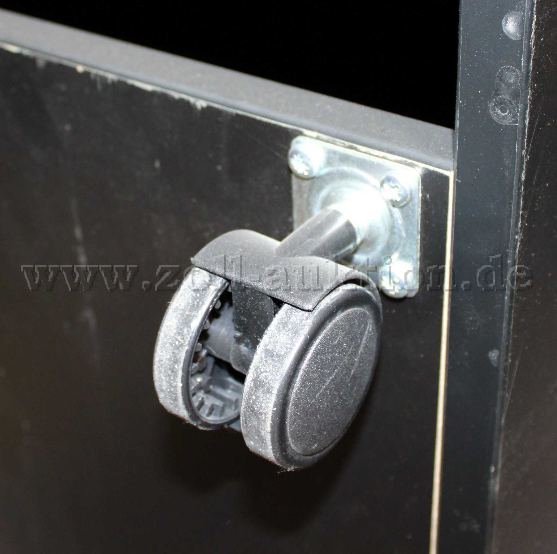 - Material: Dekor (Schrank), Kunststoff (Rollen)