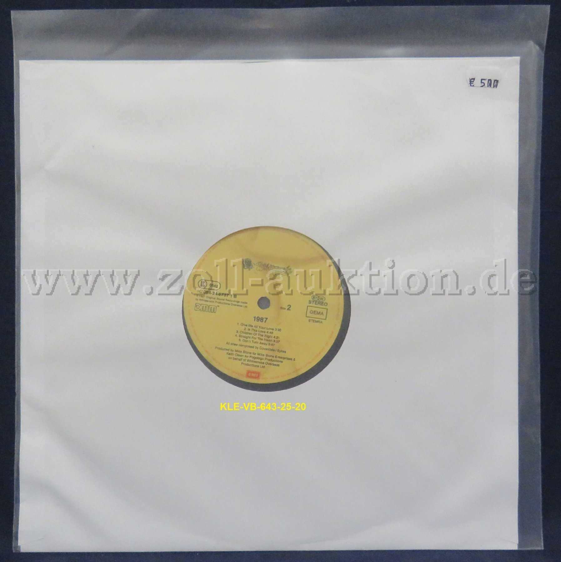 Alle Schallplatten befinden sich in einer Klarsichtschallplattenschutzhülle zur schonenden Aufbewahrung.