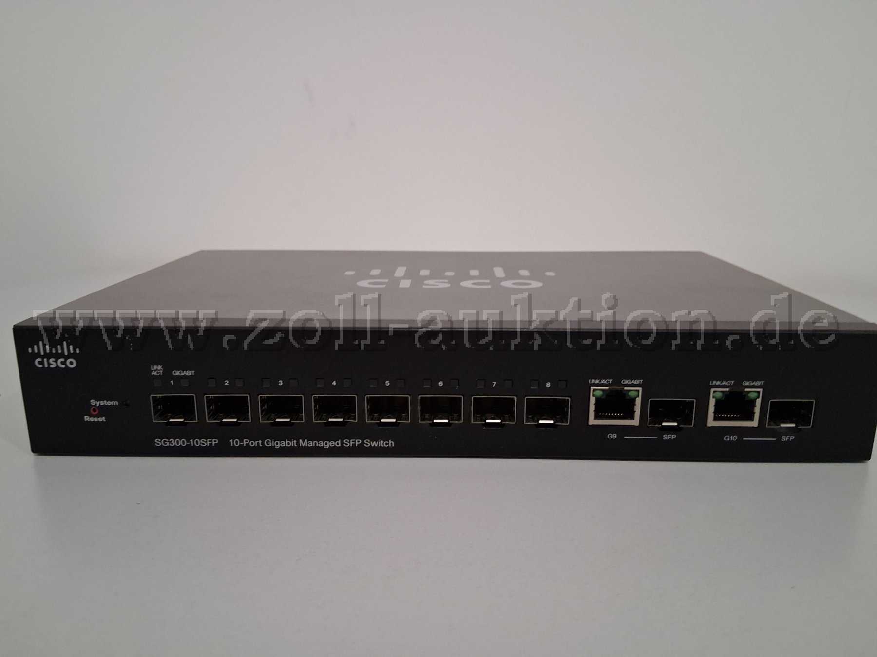 · 1x SG300-10 SFP, mit Originalverpackung: 8 Ports nur SFP, 2 Ports Kupfer/SPF