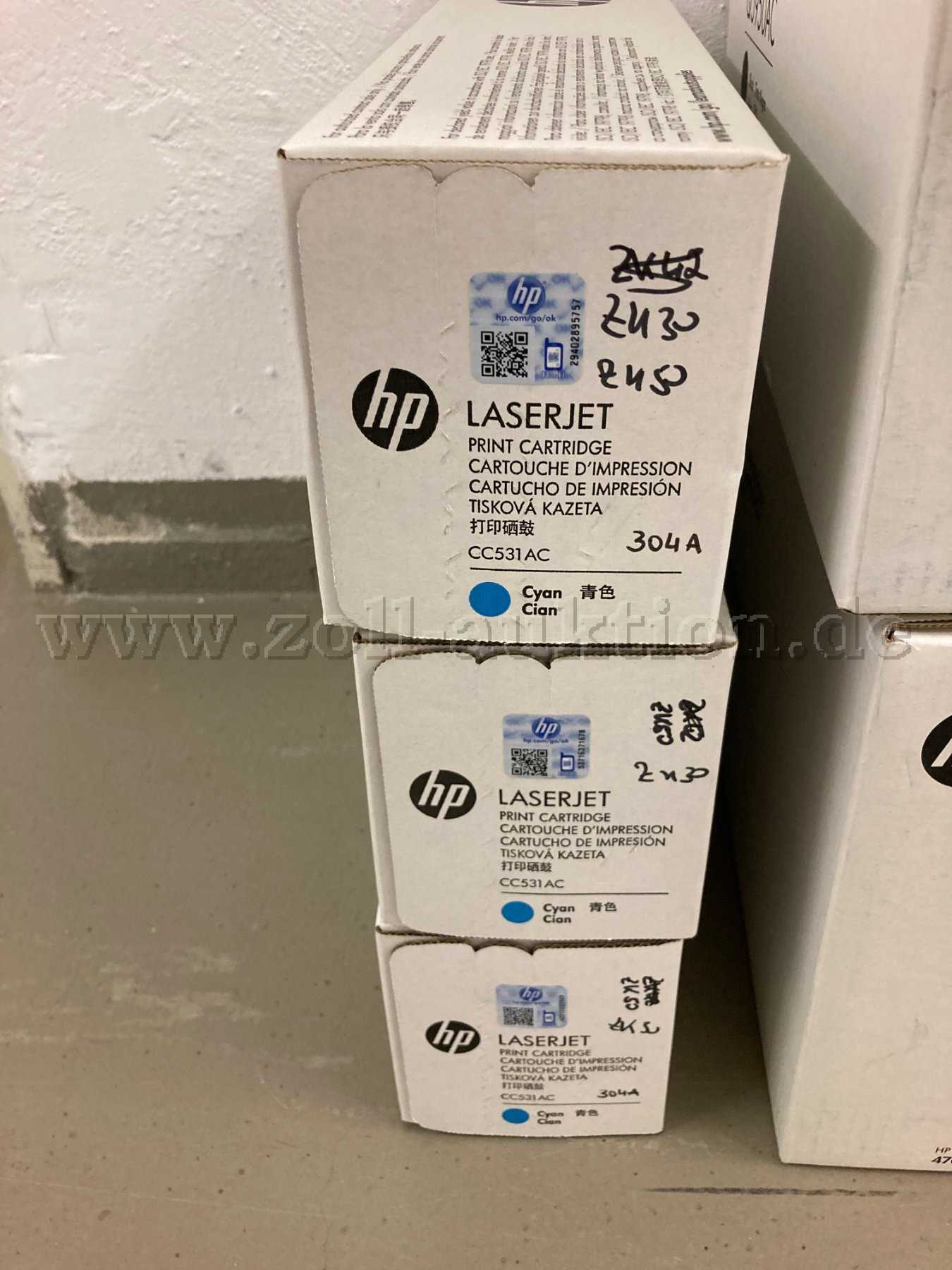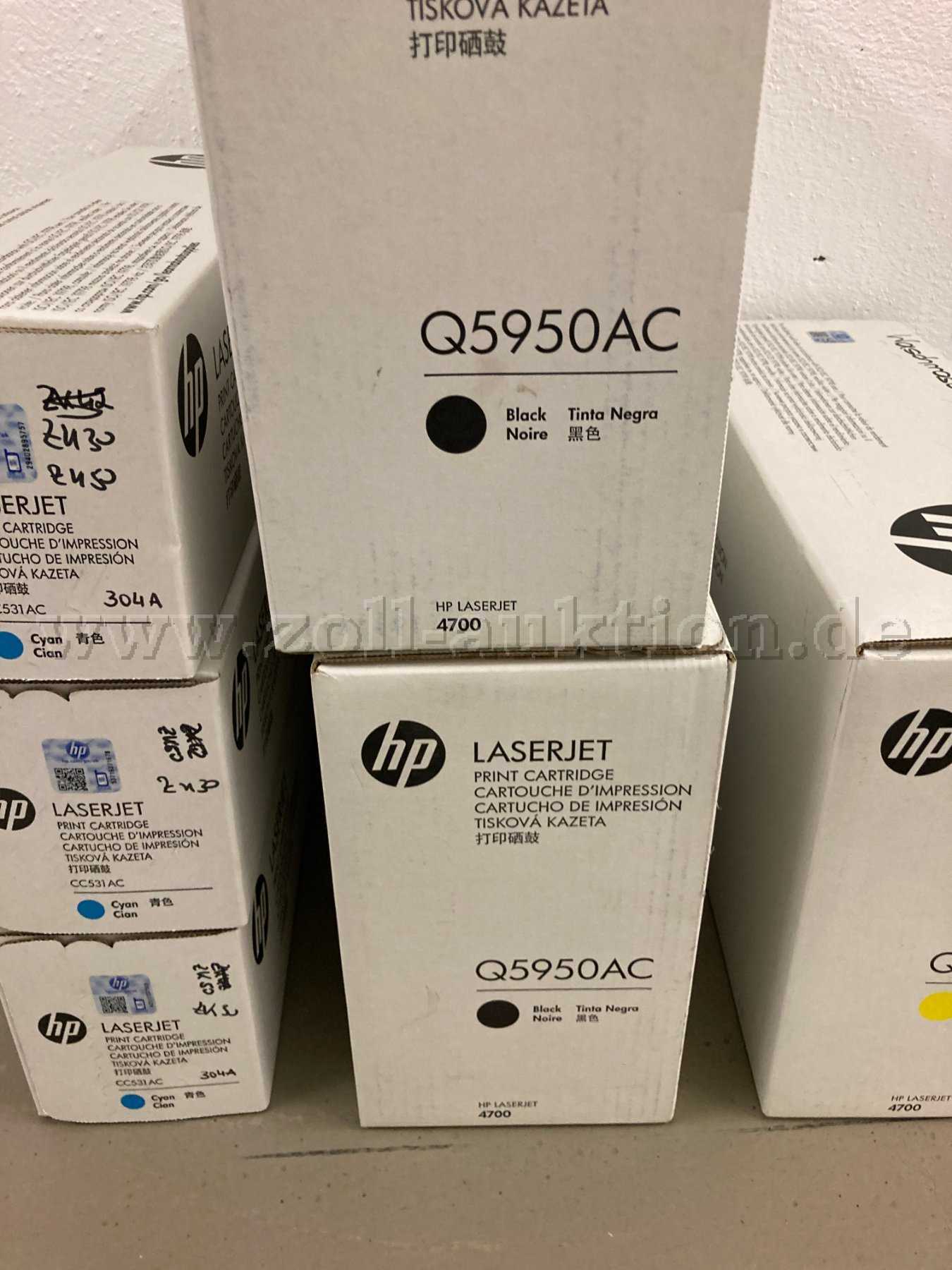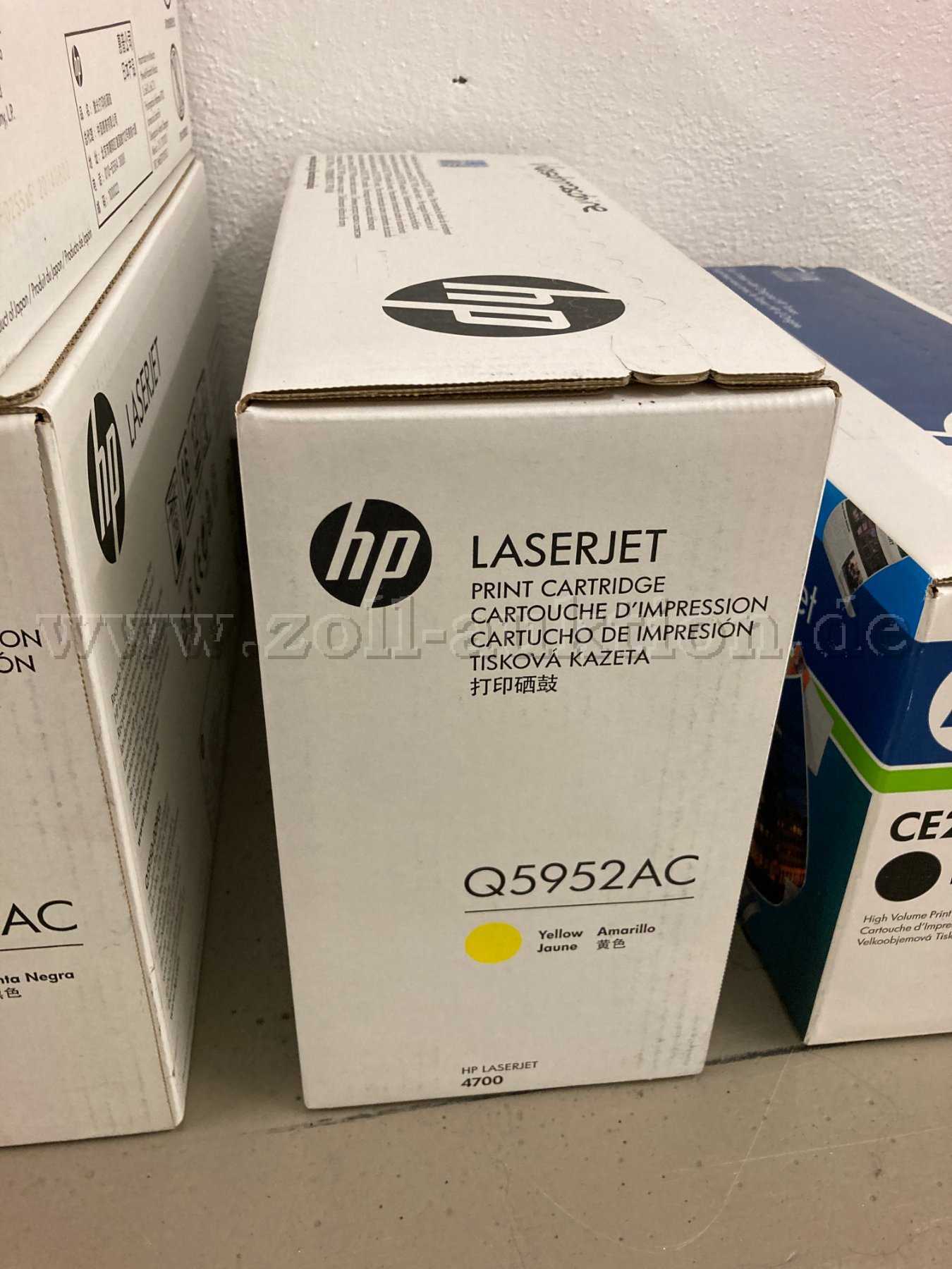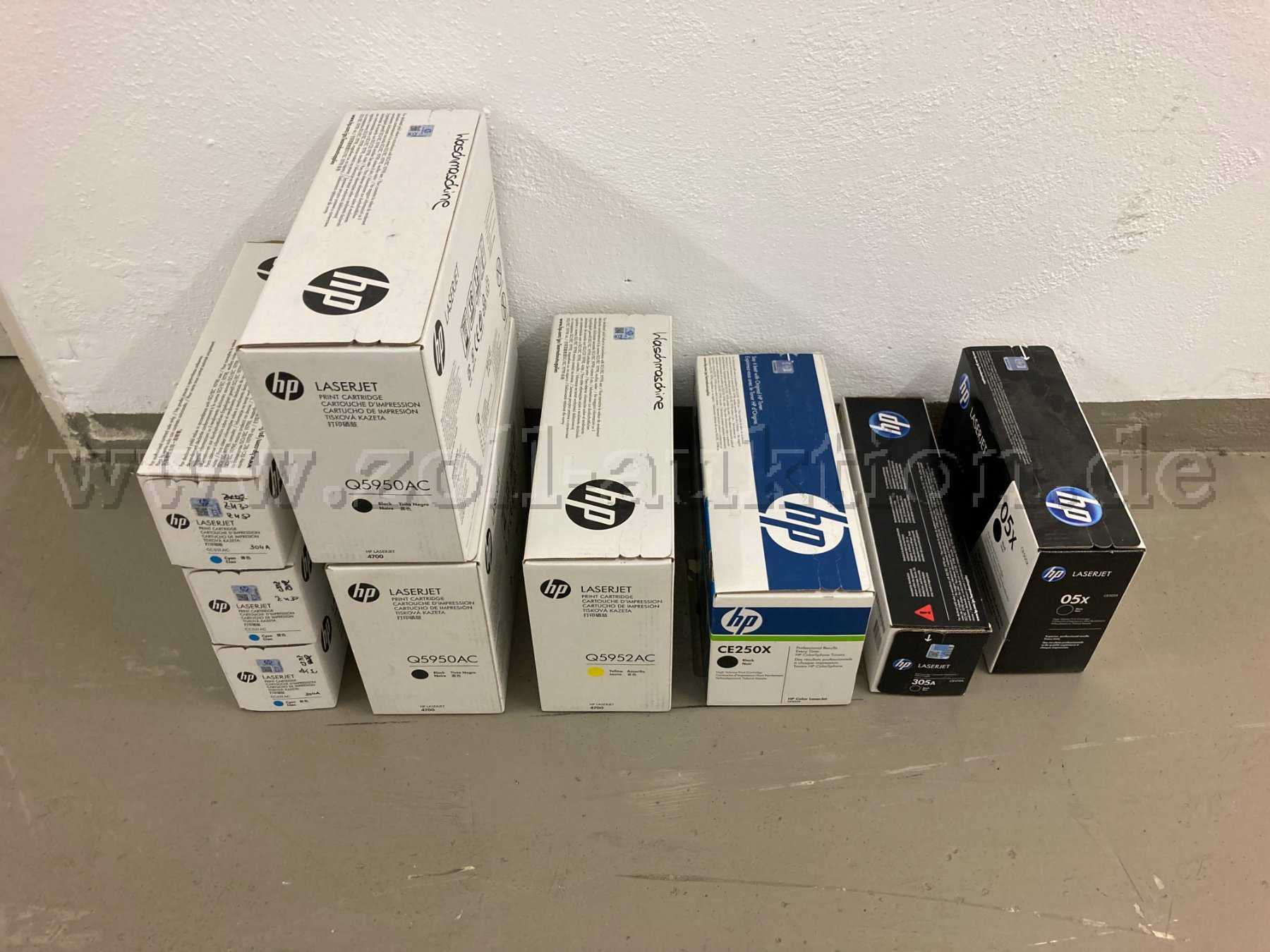 Versteigert werden 9 Original HP Laserjet (Toner) Druckerpatronen (davon eine 5er Packung); die Druckerpatronen stammen aus Behördenbestand.